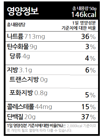 | 원재료명 및 함량 | 쇠고기87.4%(호주산), 솔비톨, 설탕, 비프시즈닝, 저키시즈닝, 후추, 아질산나트륨(발색제), 에르소르빈산나트륨(보존료), 고추맛기름[고추씨(국내산), 옥베유(외국산)] 소금 |